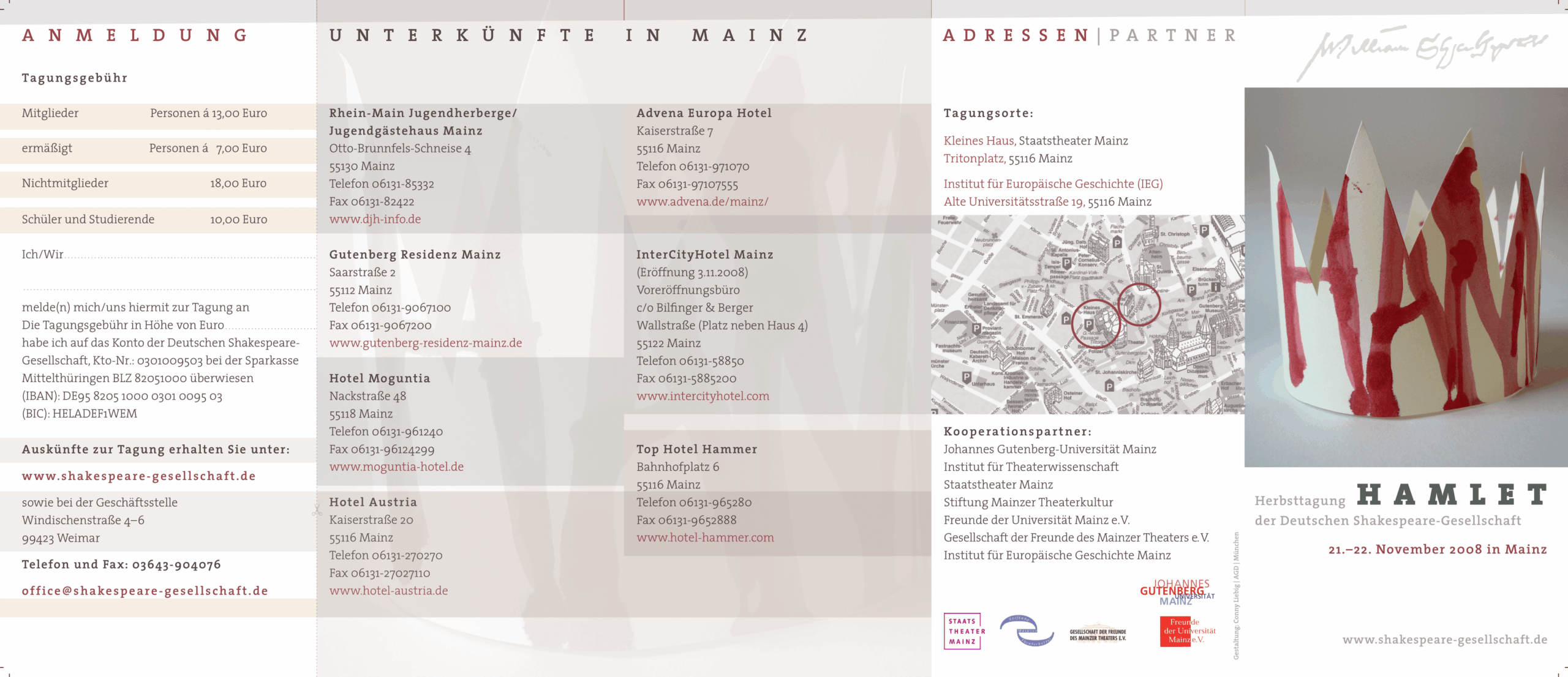 Die Herbsttagung 2008 der Deutschen Shakespeare-Gesellschaft fand am 21. und 22. November in Mainz statt.