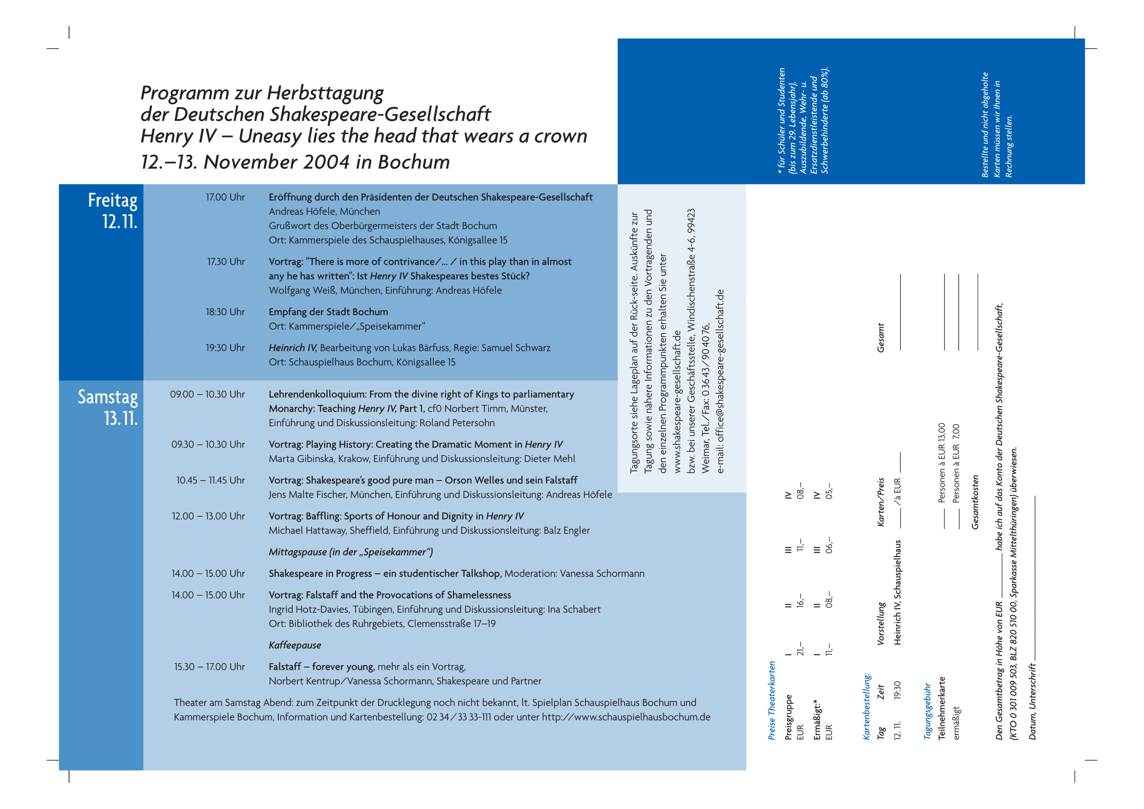 Die Tagung fand vom 22. bis 25. April 2004 im Kulturzentrum „mon ami“ in Weimar statt. Sie wurde gefördert durch die Arbeitsgemeinschaft Literarischer Gesellschaften und Gedenkstätten aus Mitteln der Beauftragten der Bundesregierung für Kultur und Medien, das Thüringer Ministerium für Wissenschaft, Forschung und Kultur sowie die Deutsche Forschungsgemeinschaft.